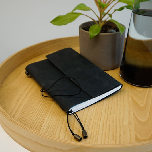 Midori A6 Journal Lock in Black Cowhide