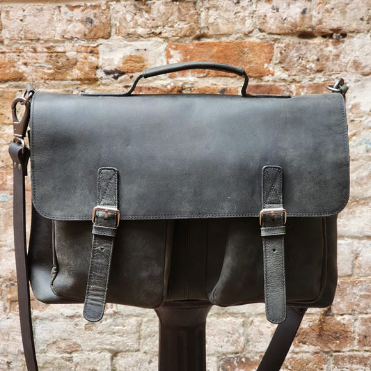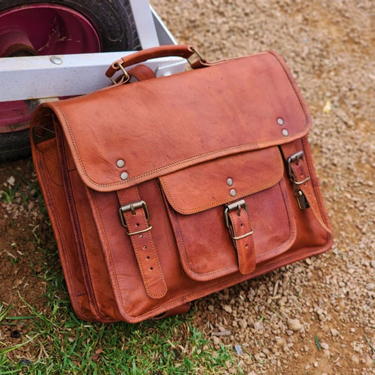 The Big Pommie 16-inch Old School Leather Satchel Bag