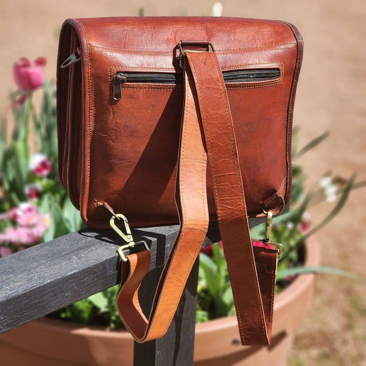 The "Mascot" 14 Inch Full Grain Goat Hide Leather Messenger Bag is perfect carrying your tablet, bottle of water, a journal and your essentials.
