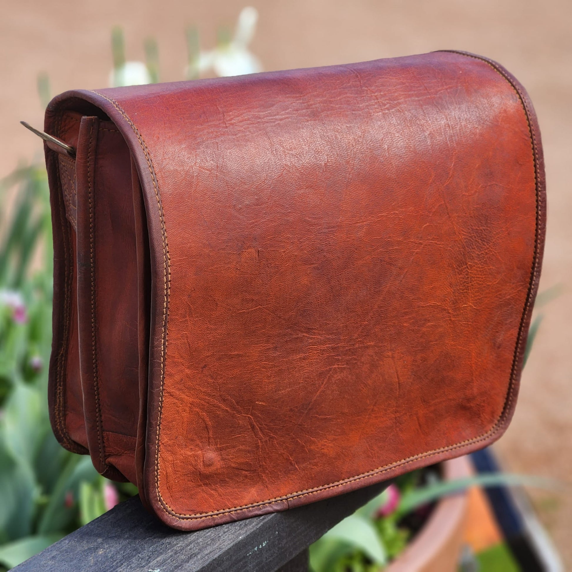 The "Mascot" 16 Inch Full Grain Goat Hide Leather Messenger Bag is perfect carrying your laptop, bottle of water, a journal and your essentials.