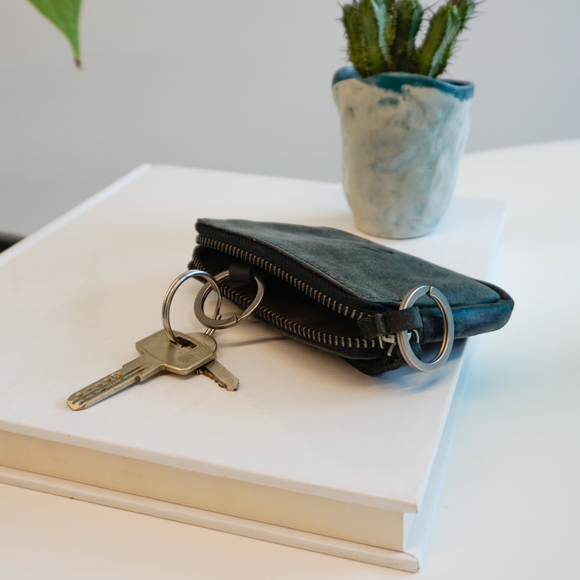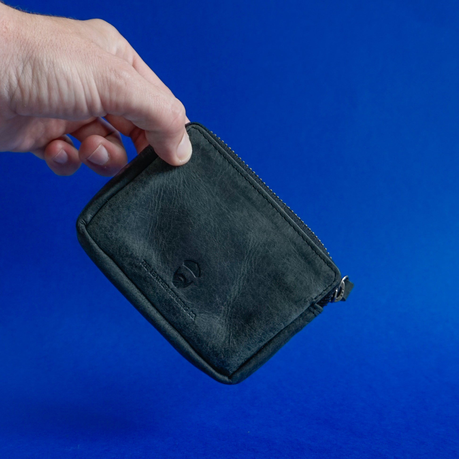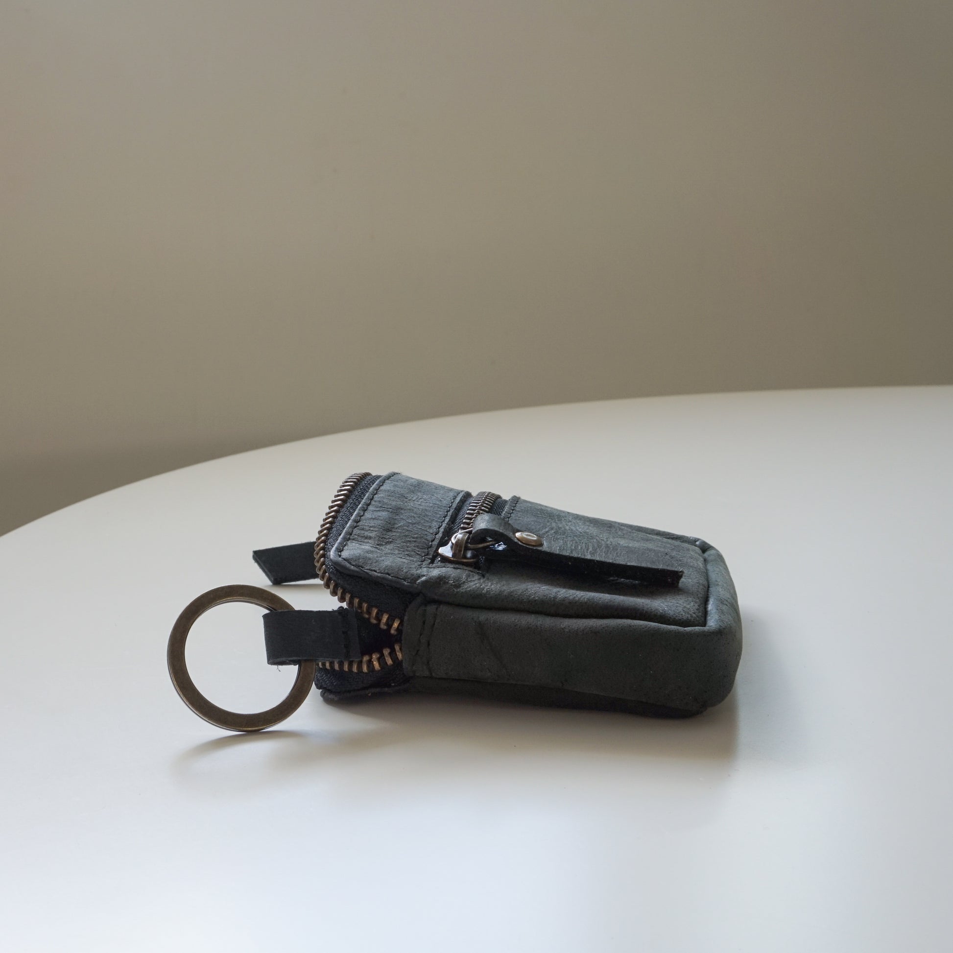 The width of the bottom of the main compartment allows cards/folded notes to also be stored in the key pouch.