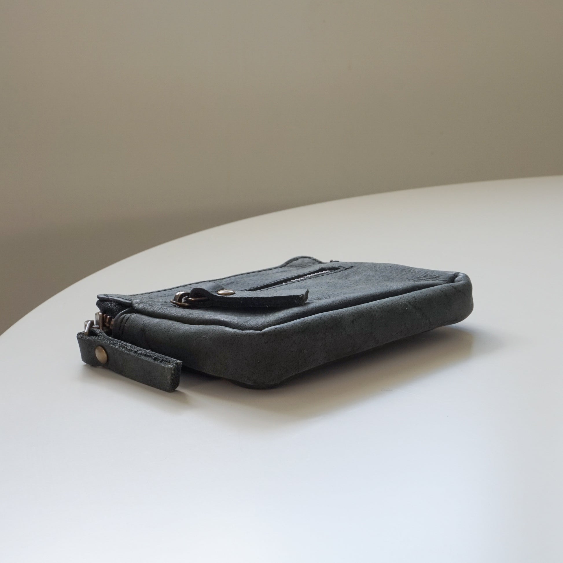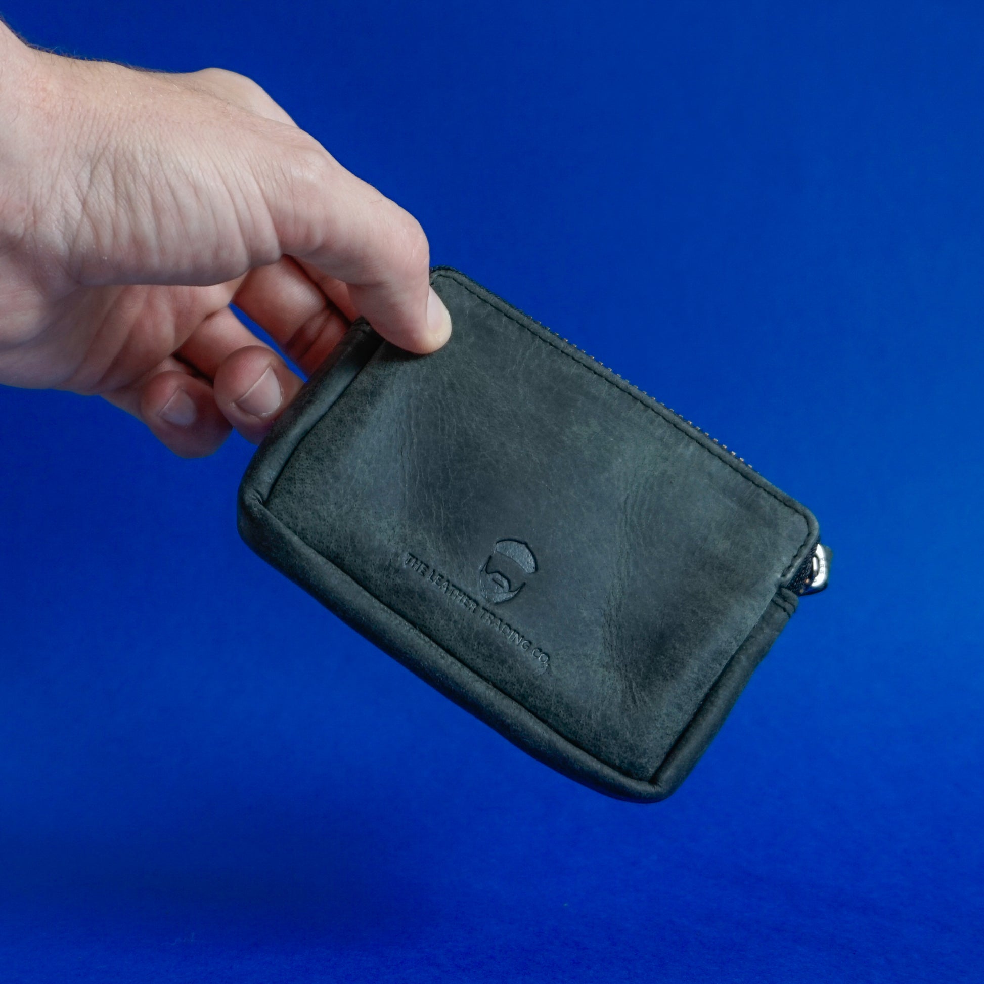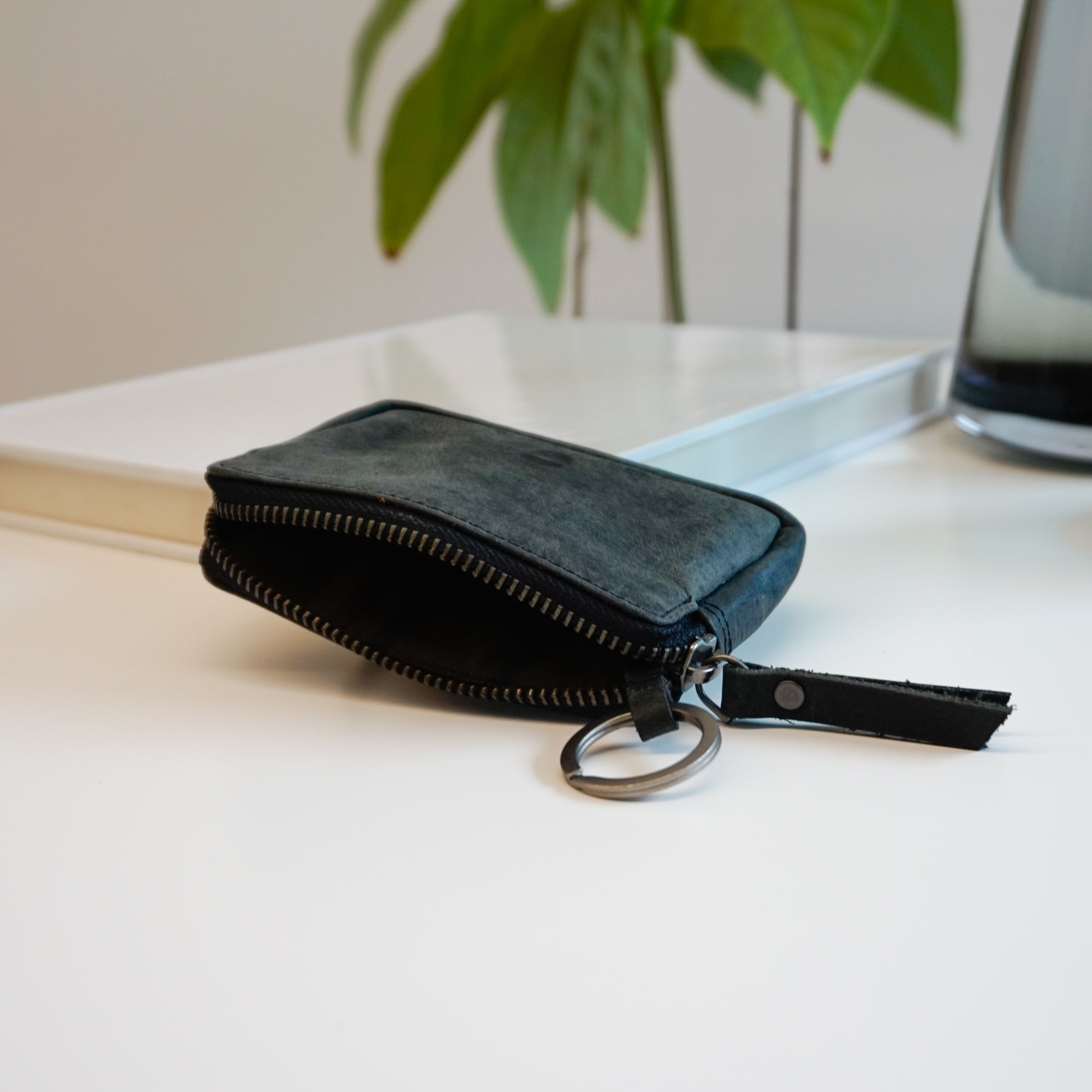 The width of the bottom of the main compartment allows cards/folded notes to also be stored in the key pouch.