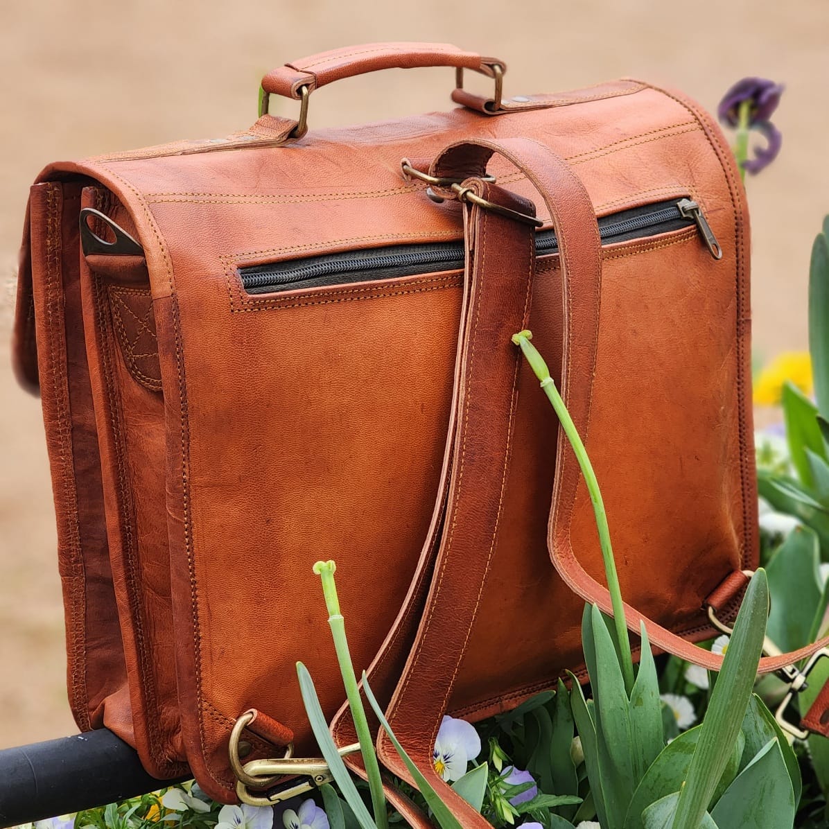 Pemulwuy 14-Inch Handmade Full Grain Leather Backpack & Satchel Bag
