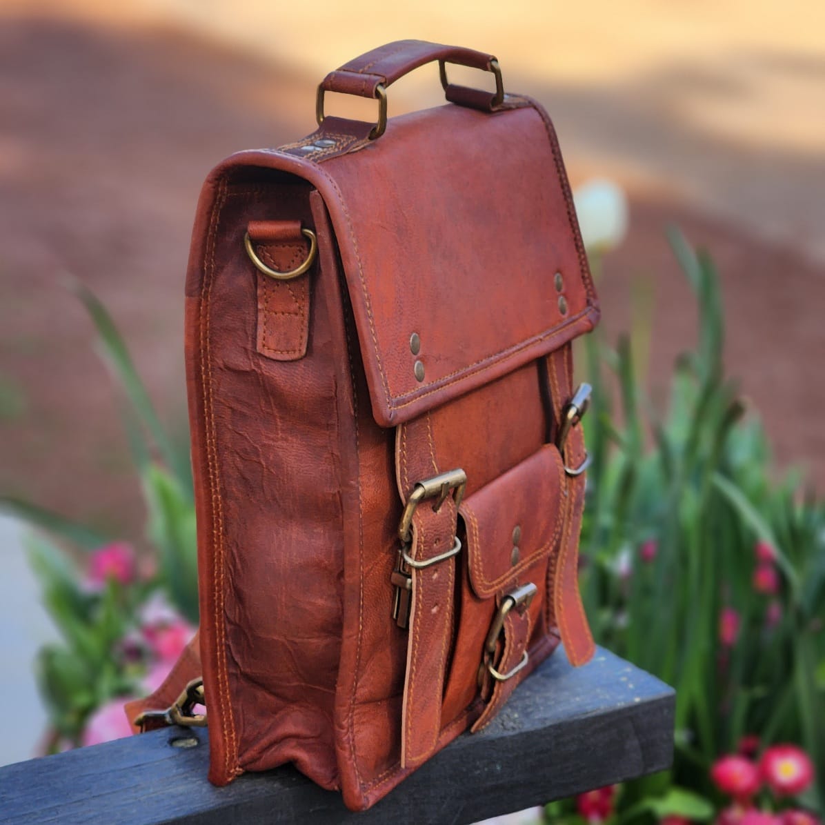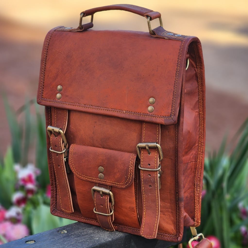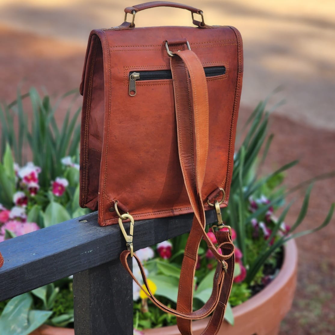 Carry it by the leather handle or convert it to a backpack with the adjustable shoulder strap.