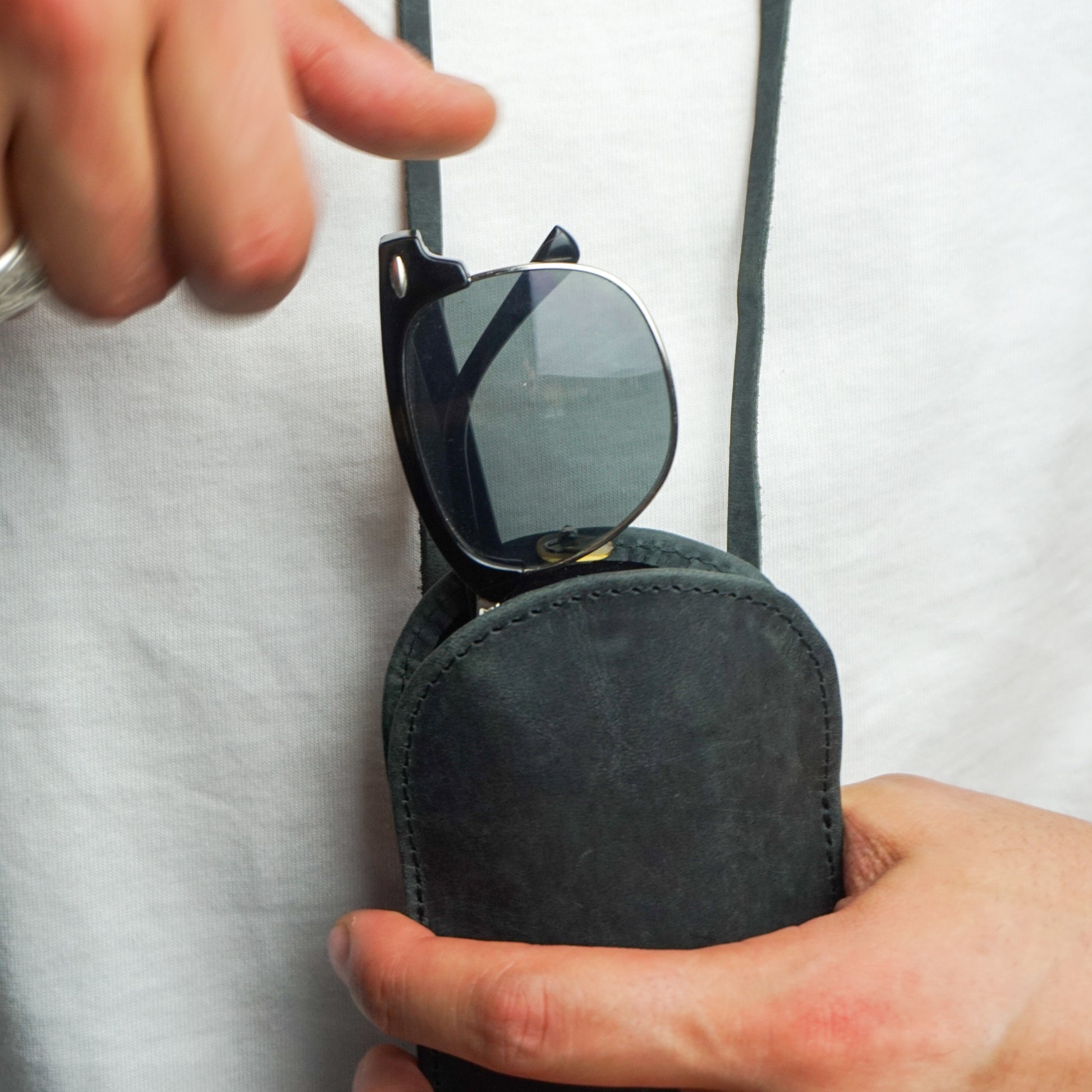 The case can be worn either around your neck,