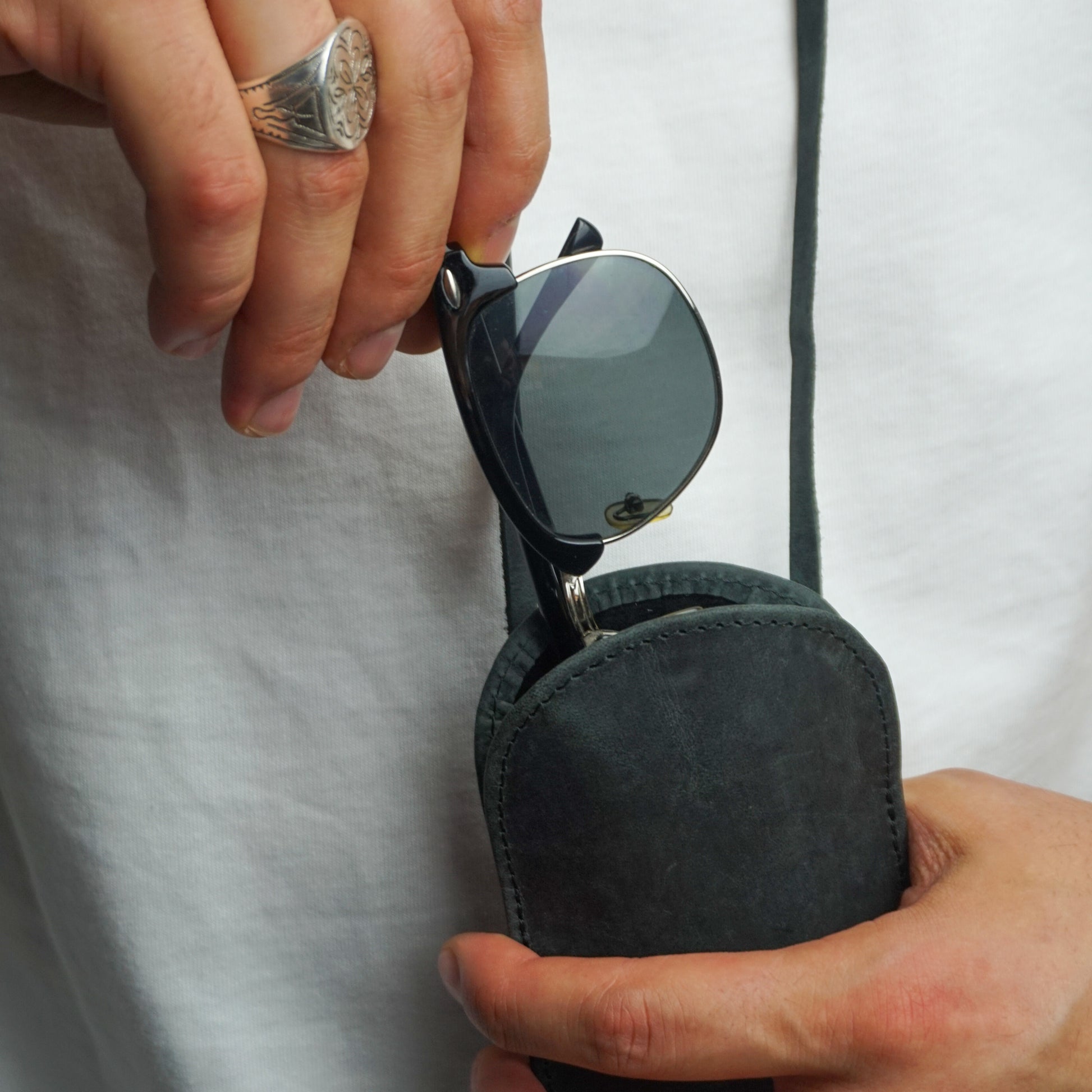 Slip Inn Glasses Case Cowhide Black